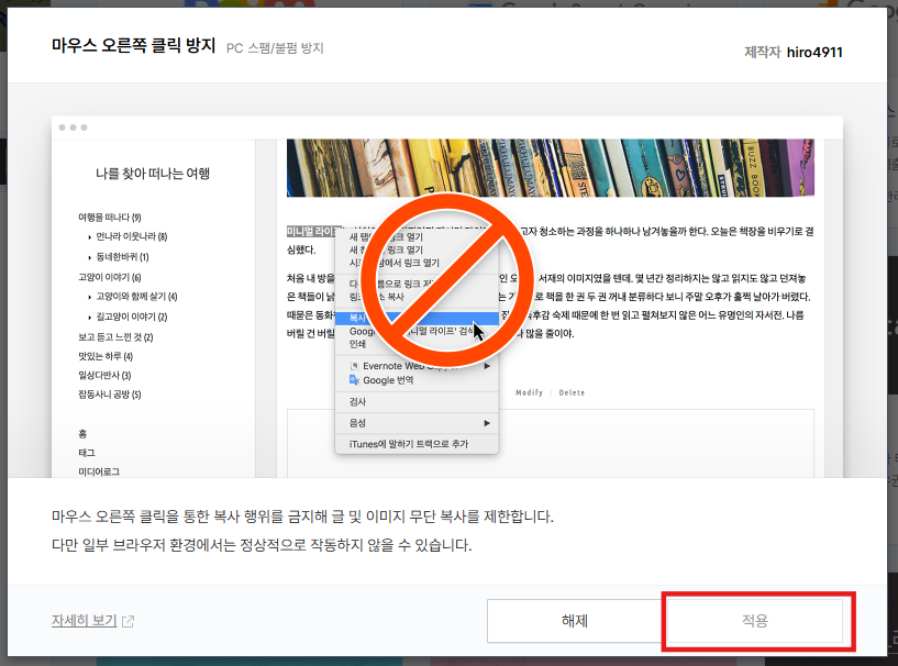 이는 내가 작성한 글을 다른 사람이 무단으로 퍼가지 않게 방지해줍니다.